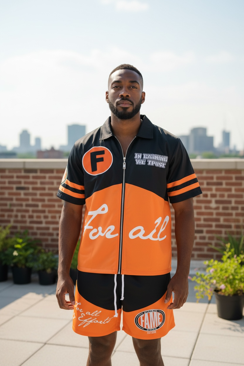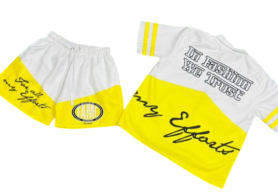 Turn heads all summer with the F.A.M.E. “In Fashion We Trust” Signature Set where bold design meets everyday comfort. Featuring a standout color-blocked look with the signature “For All My Efforts” script across the chest, this set was made to represent your grind out loud.